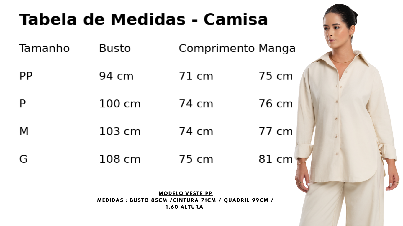 A Camisa Mary é uma peça fashion e indispensável, com modelagem over que proporciona conforto e estilo. Possui botões frontais e aberturas nas laterais, garantindo versatilidade e um toque moderno ao visual.